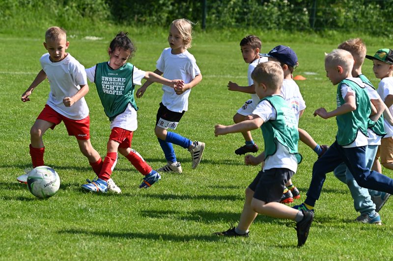 Die Veranstaltung bot nicht nur packende Fußballspiele, sondern auch eine Vielzahl von Spielen und Aktivitäten rund um das Turnier, die für jede Menge Spaß und Abwechslung sorgten. Die kleinen Fußballerinnen und Fußballer gaben ihr Bestes, um ihre Teams zum Sieg zu führen und sich als wahre Weltmeister zu fühlen.