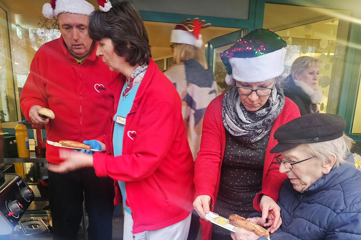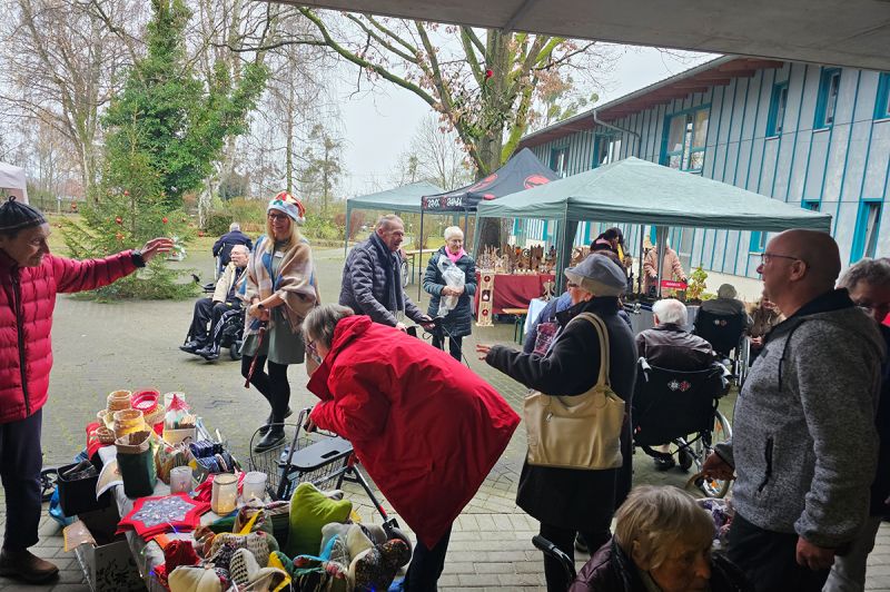 Liebevoll gestalteten Stände mit festlichen Gestecken und weihnachtlichen Kunstobjekten waren echte Hingucker auf dem Weihnachtsmarkt im Seniorenhaus Schelfwerder. Die Stimmung war großartig und die Versorgung einfach himmlisch: warme Waffeln, duftender Glühwein, leckere Bratwurst – alles, was zu einem gemütlichen Weihnachtsmarkt dazugehört. Unsere Senioren haben sich riesig gefreut, fleißig gestöbert und die besondere Atmosphäre mit ihren Angehörigen genossen.