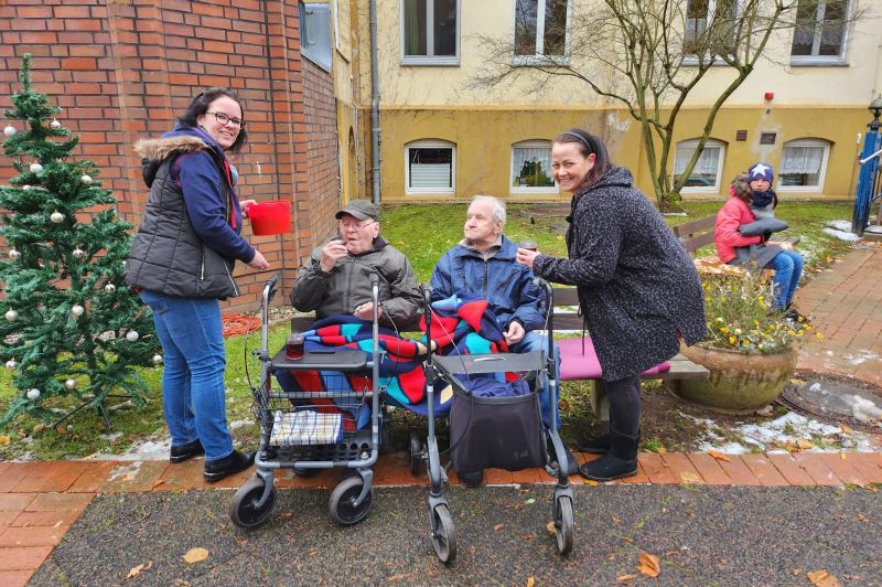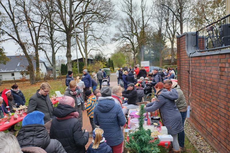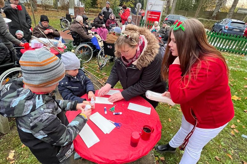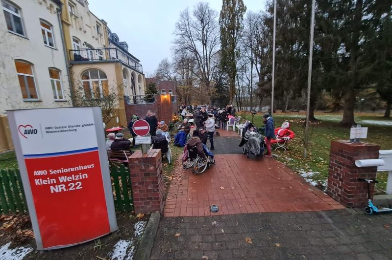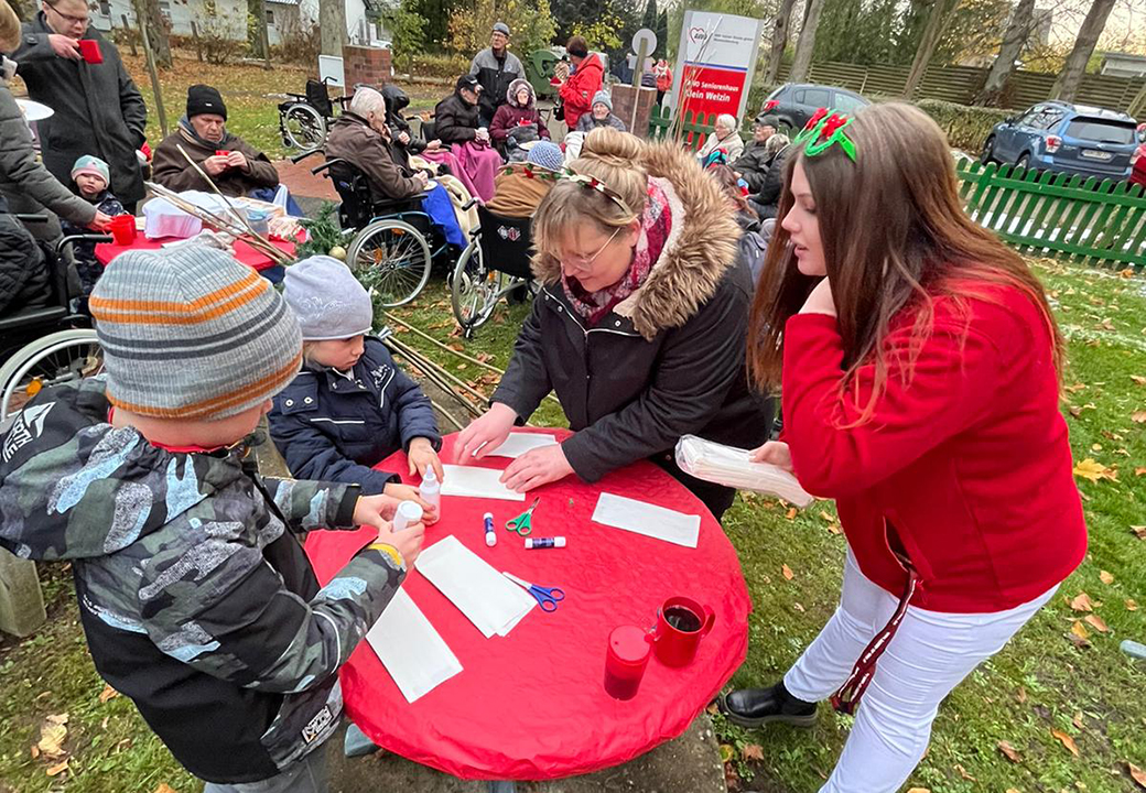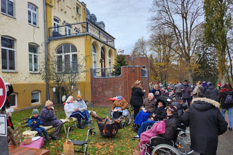 Weihnachtsmarkt in Klein Welzin. Unser Seniorenhaus startete in diesem Jahr mit dem ersten eigenen kleinen Weihnachtsmarkt. Ob Groß, ob Klein, ob Jung oder Alt… alle waren eingeladen. Es gab kleine Verkaufsstände mit Weihnachtsdeko, eine Bastelecke und Stockbrot für die Kinder, selbstgemachte Waffeln, Kuchen und Kekse und natürlich durfte die Bratwurst nicht fehlen. Bei besinnlicher Weihnachtsmusik saß man gemeinsam mit den Bewohnern, ihren Angehörigen und auch Dorfbewohnern an der Feuerschale. Die Senior*innen genossen diesen Trubel sehr. Sie freuten sich über einen Weihnachtsmarkt direkt vor ihrer Tür.
