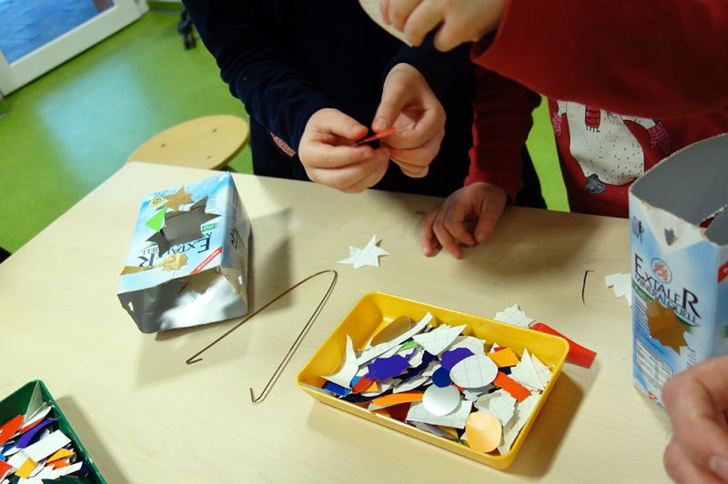 Die kleinen Schulzen basteln gemeinsam mit ihren Eltern