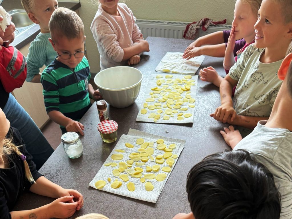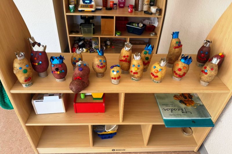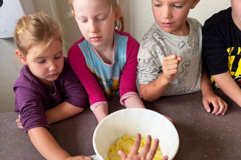 Im März haben die Kinder der AWO Kita Abenteuerland in ihrem Projekt Nachhaltigkeit zwei Kartoffeln zum Keimen in ein Aquarium gesteckt. Die Kinder aus der Gruppe Fuchsbau konnten so beobachten, was unter der Erde passiert. Letzte Woche wurde geerntet und die Kinder waren erstaunt, wie viele Kartoffeln sie ausbuddeln konnten. Anschließend haben wir die Ernte gemeinsam verarbeitet: In unserer Kinderküche entstanden knusprige Pommes und Chips. Dazu gab es leckeren Kräuterquark, den die Kinder selbst aus frischen Zutaten angerührt haben. So konnten die Kinder den gesamten Kreislauf vom Pflanzen über das Wachsen und Ernten bis hin zur Zubereitung und zum Genießen erleben – ein wertvoller Einblick in Nachhaltigkeit und gesunde Ernährung.