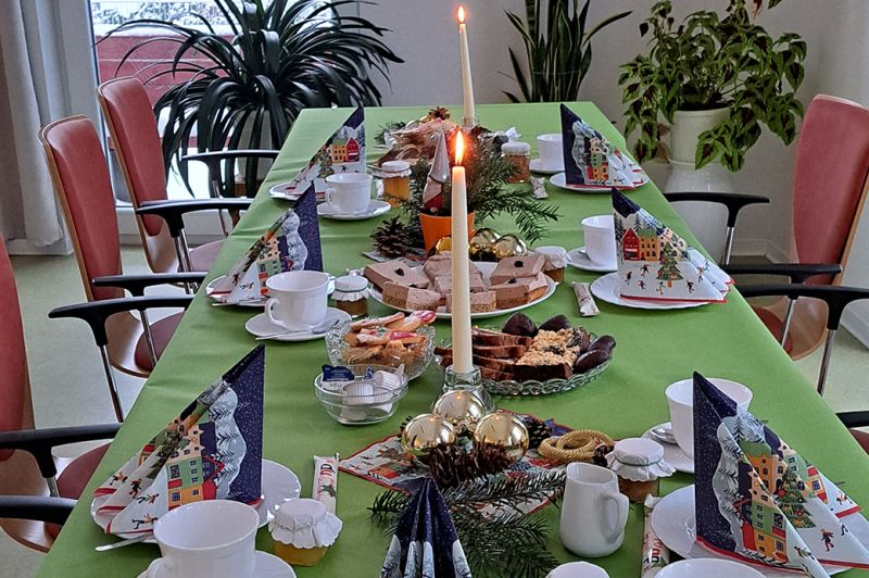Weihnachtsfeier in der Servicewohnanlage Neumühler Höhe mit Überraschungsgästen. Der Schweriner Shanty Chor “de Klönköpp“ verzauberte die Senioren mit traditionellen Seemann- und Weihnachtsliedern. Bei Kaffee und Kuchen und weihnachtlichen Klängen kamen alle schnell in festliche Stimmung und so wurde es ein gelungener Nachmittag für alle.